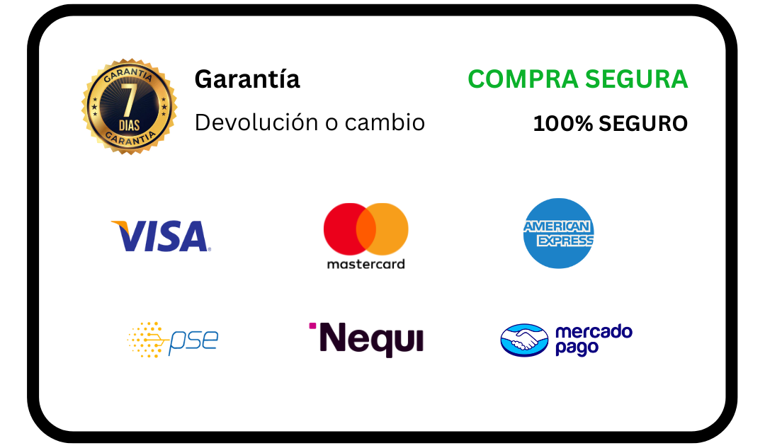 Tienes una garantía de 7 días. Si no cumple con tus expectativas, te devolvemos el dinero sin complicaciones 🤗.