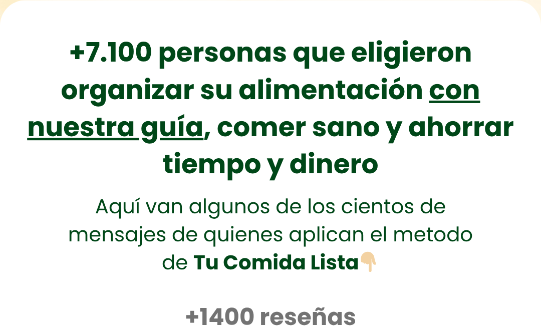 Sabemos que te va a encantar esta guía para tener Tu Comida Lista 🥰, por eso queremos que la pruebes sin preocuparte 🙌.