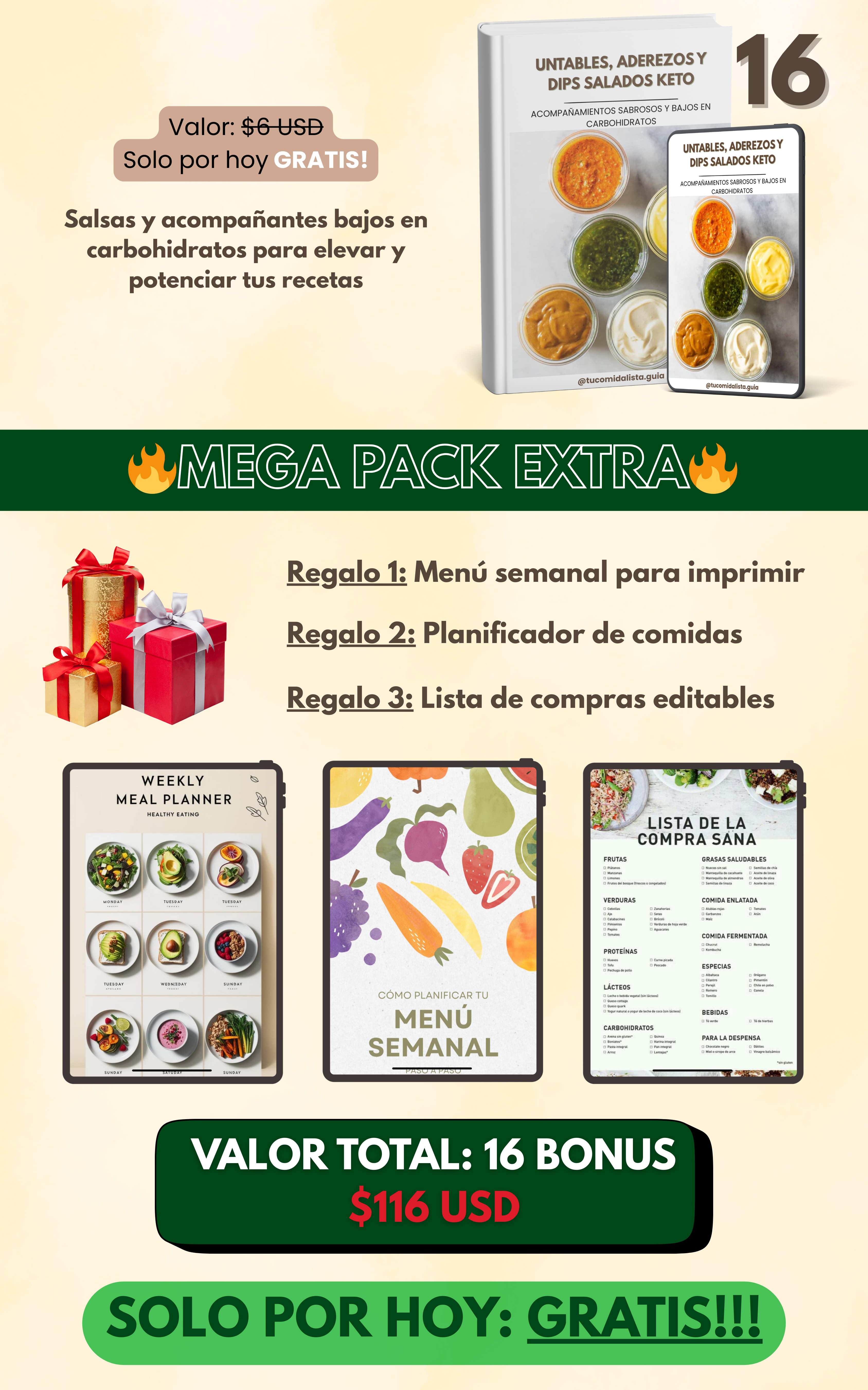 TU COMIDA LISTA - GUIA DIGITAL + 16 BONUS + 3 REGALOS!
